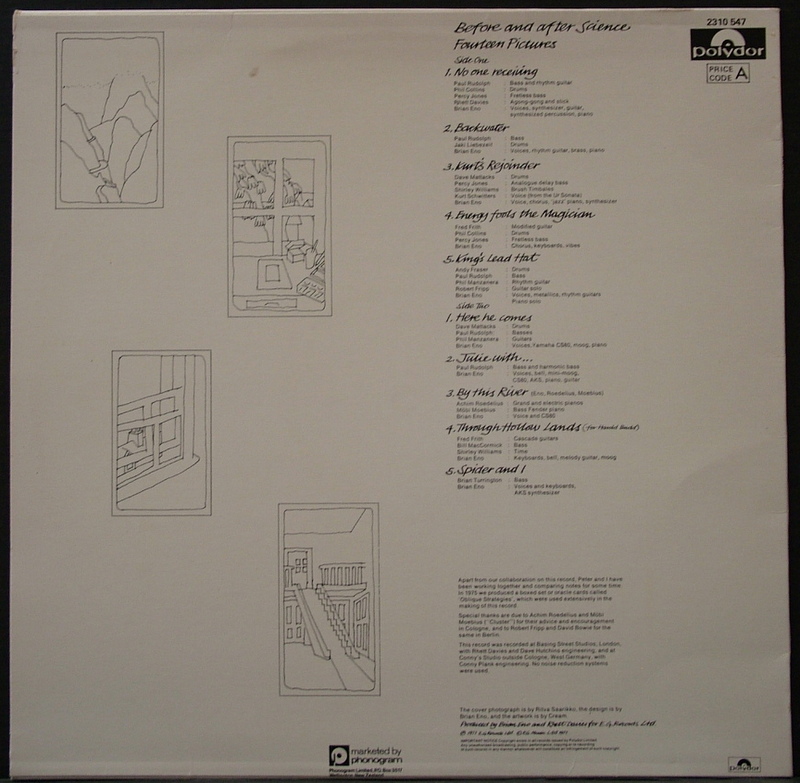 A LOT OF MUSICIANS PLAYING IN VARIOUS COMBINATIONS IN THE 10 TRACKS THAT MAKE THIS ALBUM. (PHIL COLLINS ON DRUMS, ROBERT FRIPP, PHIL MANZANERA, ACHIM RODELIUS AND MOBI MOEBIUS FROM CLUSTER, ETC ETC)