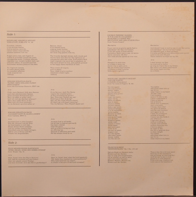 | Artist | BACH, ELLY AMELING, HANDEL, MENDELSSOHN BARTHOLDY, MOZART, SCHUBERT |