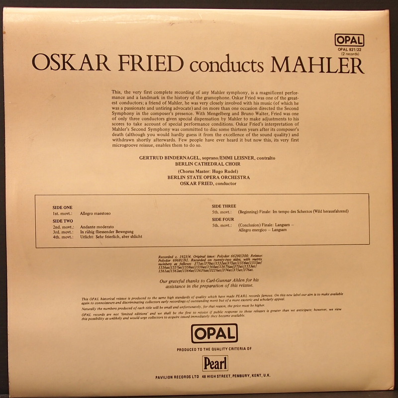 THIS IS AN ENGLISH PRESSING COMPILING RECORDINGS FROM 1923/4 BY POLYDOR. IT IS THE FIRST INTEGRAL RECORDING OF MAHLER SYMPHONY NO.2, AND WAS PRESSED AT THE TIME ON 22 SIDES OF 78′S.